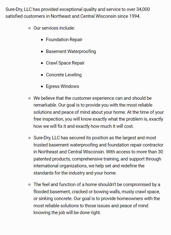 Leaks and cracks in your roof or ceiling might not be noticeable until you inspect your Oshkosh basement waterproofing repairs. We can assist you with basement waterproofing repairs in Oshkosh if you notice uneven floors or foundation shifting in your crawl space. When you notice a shifting foundation or uneven floors in your crawl space, we can help you with crawl space repairs. We can assist you with all of your crawl space issues.